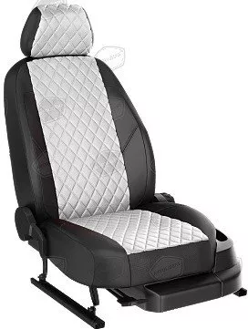 Тыльные и боковые части чехлов сделаны из гладкой экокожи, а центральная часть из перфорированной экокожи, алькантары или велюра.