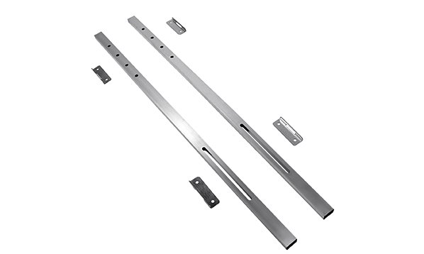 В комплекте: 2 алюминиевых профиля (1330*40*20 мм) с отверстиями под крепежные скобы, 4 пластиковых заглушки для профилей, 4 оцинкованные пластины для внутреннего крепления автобокса.